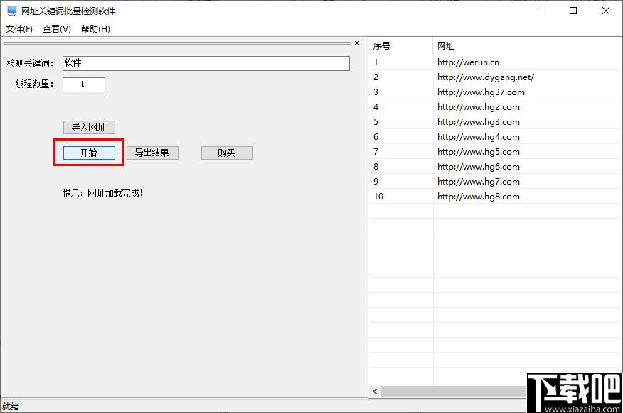 6、单击“开始”按钮,等待软件开始检测网站中是否包含关键词。